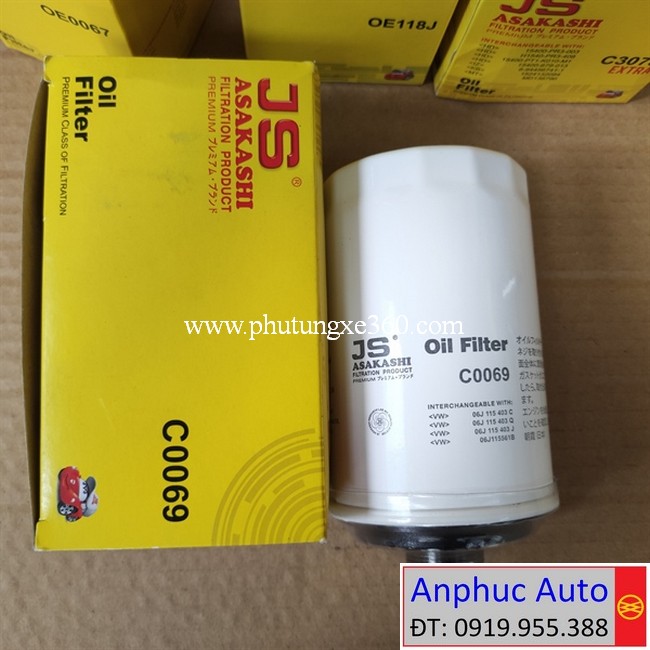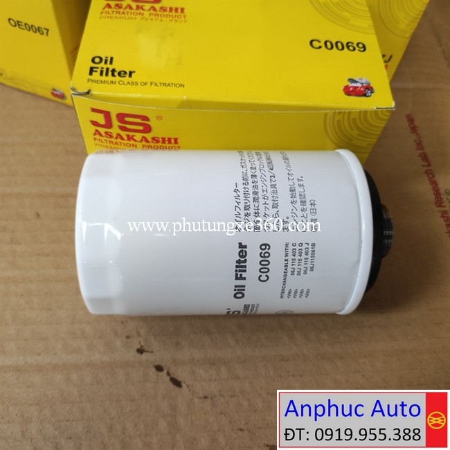 Lọc nhớt Audi A5 1.8L 2007-2011, Audi A5 2.0L 2008-2016 #JS Asakashi Nhật C0069 |06H115403
