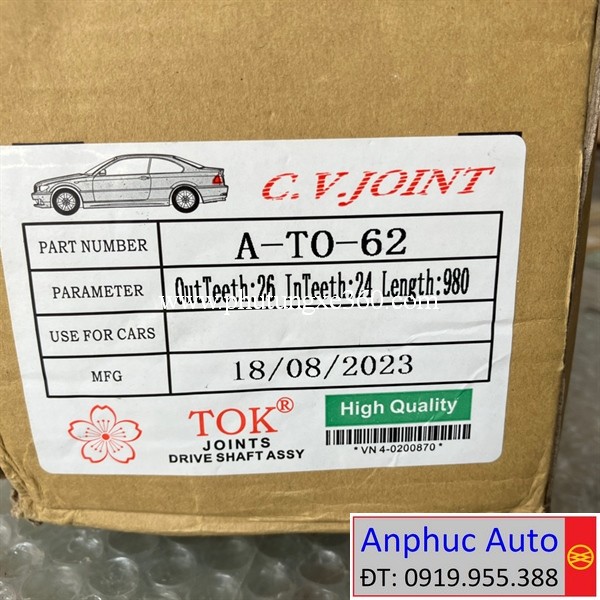 - Cây láp phải Toyota Camry 2.4 2007- 2011 hàng cao cấp TOK Japan | TOK: ATO62A, A-TO-62A | Toyota 43410-06570