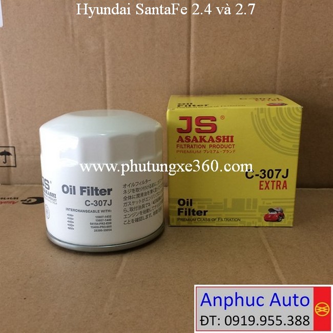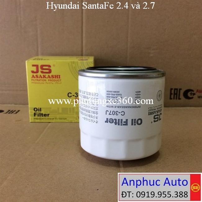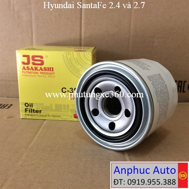 Lọc nhớt Hyundai SantaFe 2.4 2012, 2013, 2014, 2015, SantaFe 2.7 2006, 2007, 2008, 2009 #JS Asakashi Nhật C307J