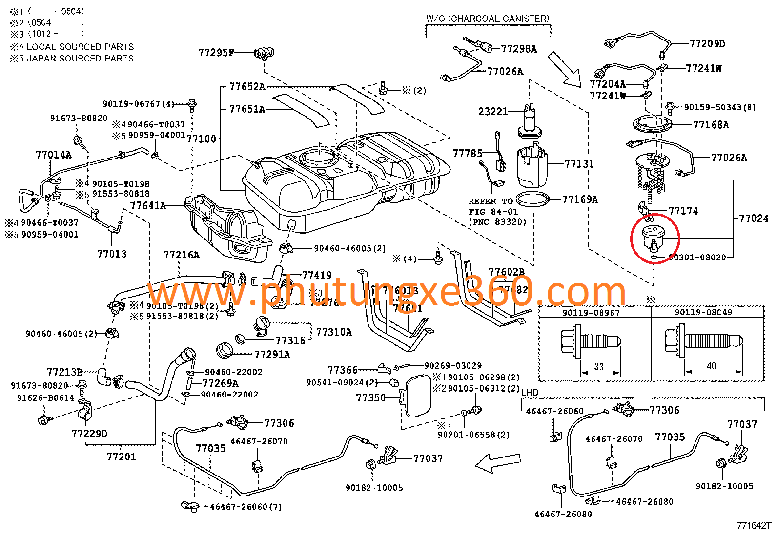 Lọc xăng rời trong thùng dùng thay thế cho mã chính hãng Toyota: 77024-26010
